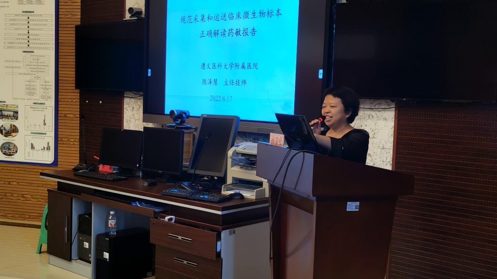2022年8月17日-19日,检验科党支部组建专家组近20人,由检验科党支部书记陈泽慧同志的带领下,赴余庆、凤冈县、湄潭县医院开展交流联学活动。活动以集中授课及实验室交流方式展开,其中陈泽慧教授、黄健教授、曹喻副教授及骆诗露老师几位专家分别就《规范采集和运送临床临床微生物表本正确解读药敏报告》、《科研设计与论文撰写》、《努力挖掘体液细胞形态诊断加之》及《临床化学室内质量控制及失控后的处理》进行了多场次专题讲座。19日检验科党支部支近20位党员前往湄潭县人民医院检验科实验室与各专业组老师现场交流并针对临床实际工作及党建活动开展做细致的交流。
