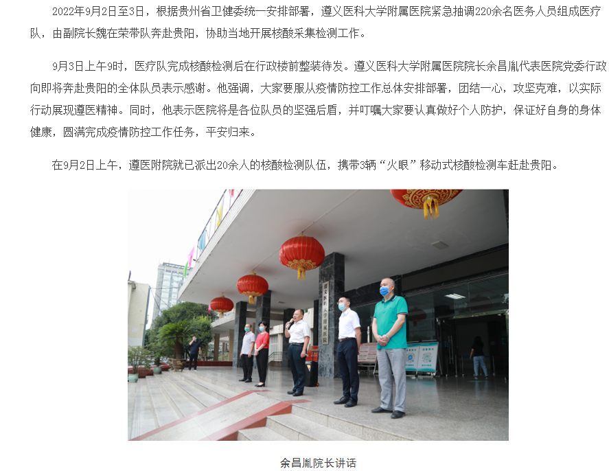 TapTap附属医院抽调220余名医疗队员奔赴贵阳开展核酸采集检测工作