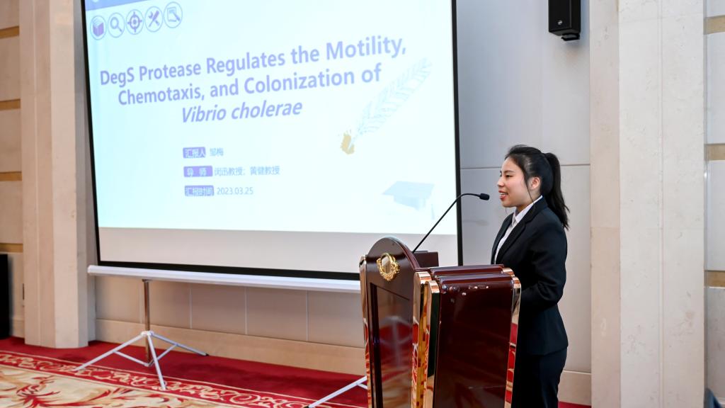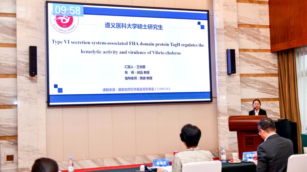 在后续的硕士研究生、博士研究生分论坛,会议主要以现场汇报和壁报交流两种形式展开。据悉,本次会议共遴选来自全国各知名高等院校的近90余名队员现场汇报。其中公司临床检验诊断学专业研究生王光丽就《Type VI secretion system-associated FHA domain protein TagH regulates the hemolytic activity and virulence of Vibrio cholerae》、邹梅就《The DegS protease regulates motility, chemotaxis, and colonization in Vibrio cholerae》进行了专题汇报及专家提问环节。此外,公司秦荟钧、刘子怡与李仪晴等同学进行了壁报交流。